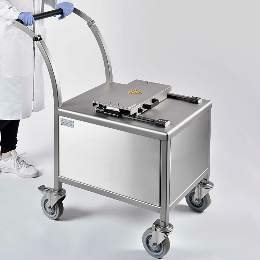 5. The sliding cover of the mobile transport vehicle is shielded to ensure a significant reduction in the user's full body exposure. The lockable system ensures the safety and complete closure of the transportation source. Even in situations where temporary storage is required. Adopting a sturdy stainless steel frame, easy to maintain and durable.